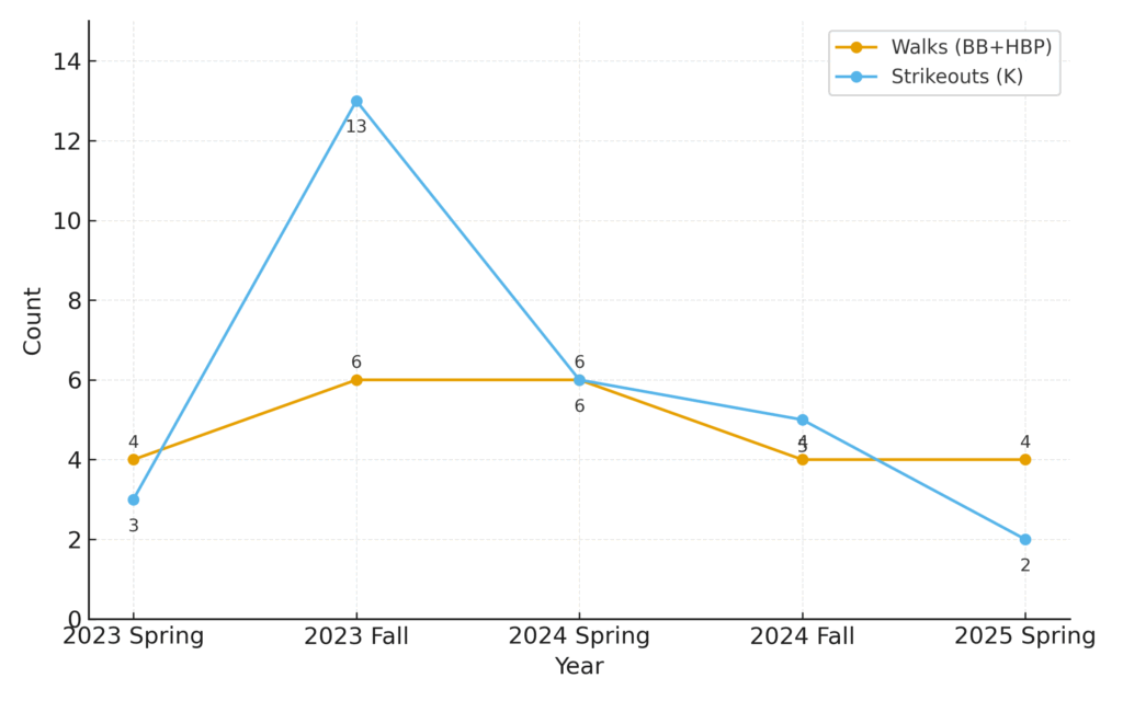 年度別打撃成績|四死球と三振